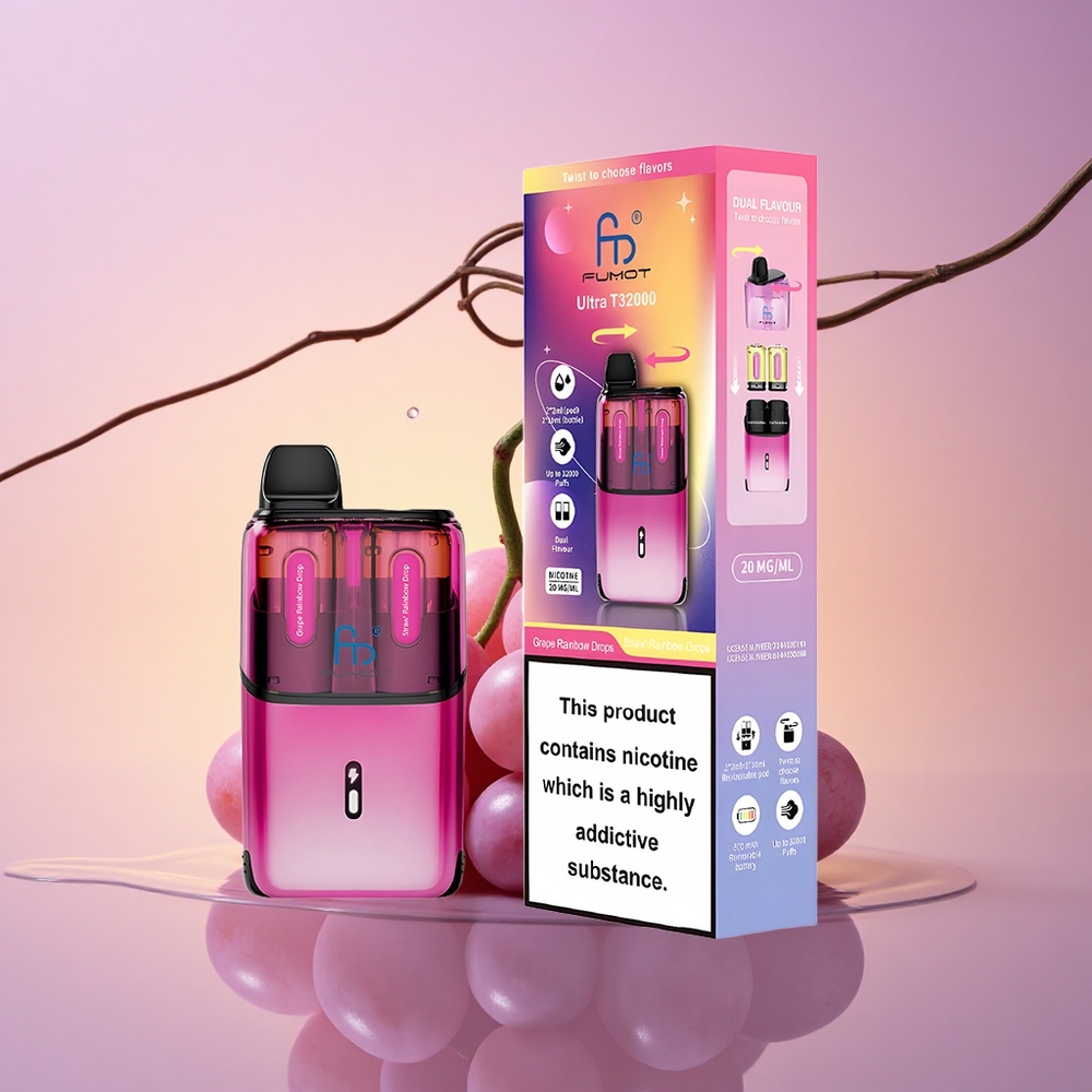 Fumot Ultra T32000 Puffs Jahodové Duhové Kapky – 20mg Nikotinu, 800mAh Baterie